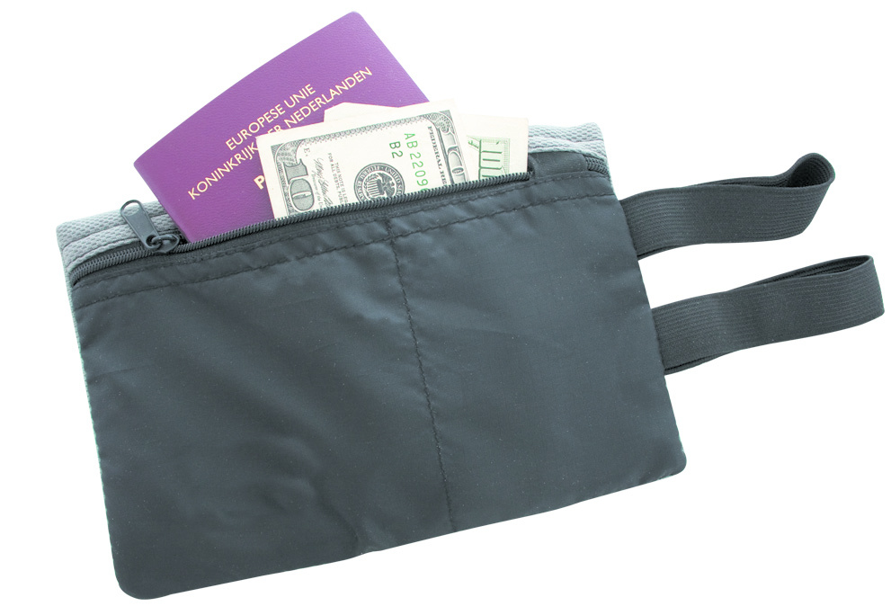 Dit veiligheidstasje met rits vak en waterdicht tasje is ideaal om uw reisdocumenten in op te bergen. Verkrijgbaar in twee kleuren.
